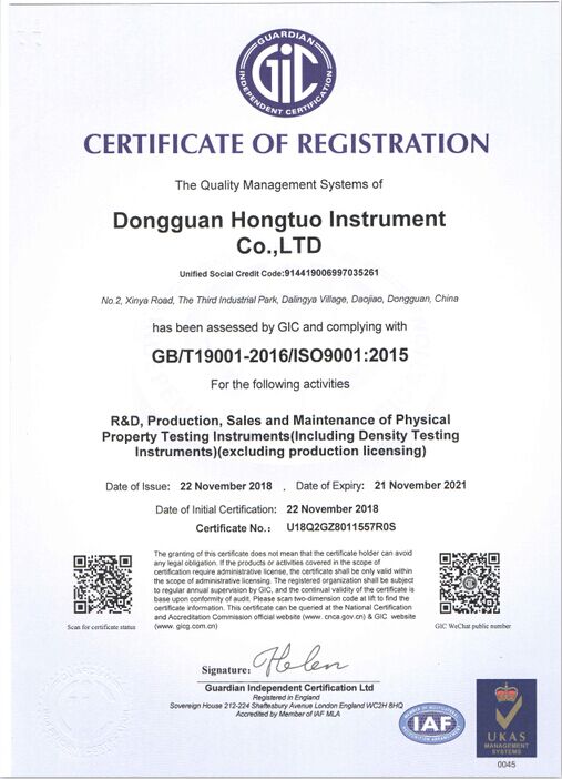 宏拓儀器通過ISO9001:2015質(zhì)量體系管理認(rèn)證,通過國家計量測試中心全面質(zhì)量與性能檢測,獲得國家計量器具型式批準(zhǔn)CPA證書,參與起草制定: 【GB/T 1040.1-2025塑料 拉伸性能的測定】、【GB/T 1634.1-2025塑料 負(fù)荷變形溫度的測定】、【GB/T 44559.1-2024塑料 硬質(zhì)塑料沖孔性能的測定】 、【GBT 43139-2023鑄造鋁合金液減壓凝固試樣密度檢測】......等標(biāo)準(zhǔn)。
